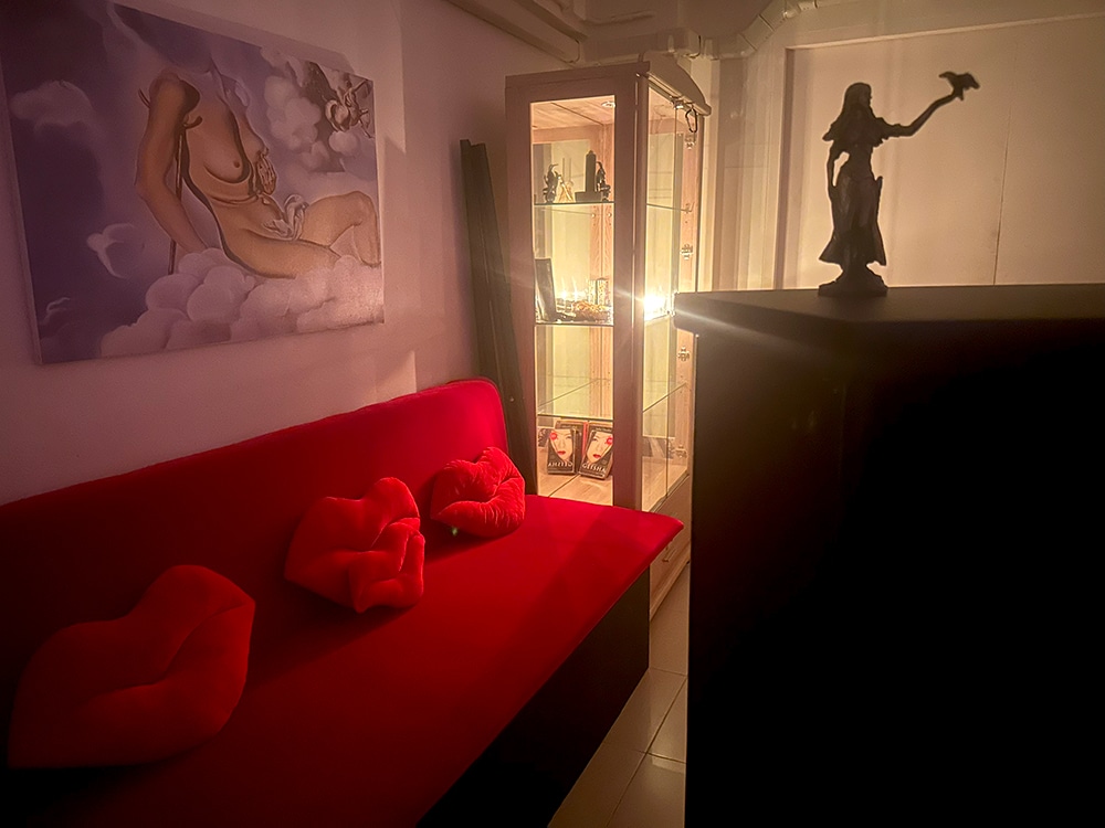 On the ground floor: a mystical entrance hall that leads to the Koh Phangan Podcast Studio – soundproofed and story-centric. Here, I’ll soon be sitting down with some of the island’s most intriguing creatures for Astro Sessions: A Private Affair – intimate dives into their charts, revealing the mythic threads woven through their psyches. (Launching soon →)