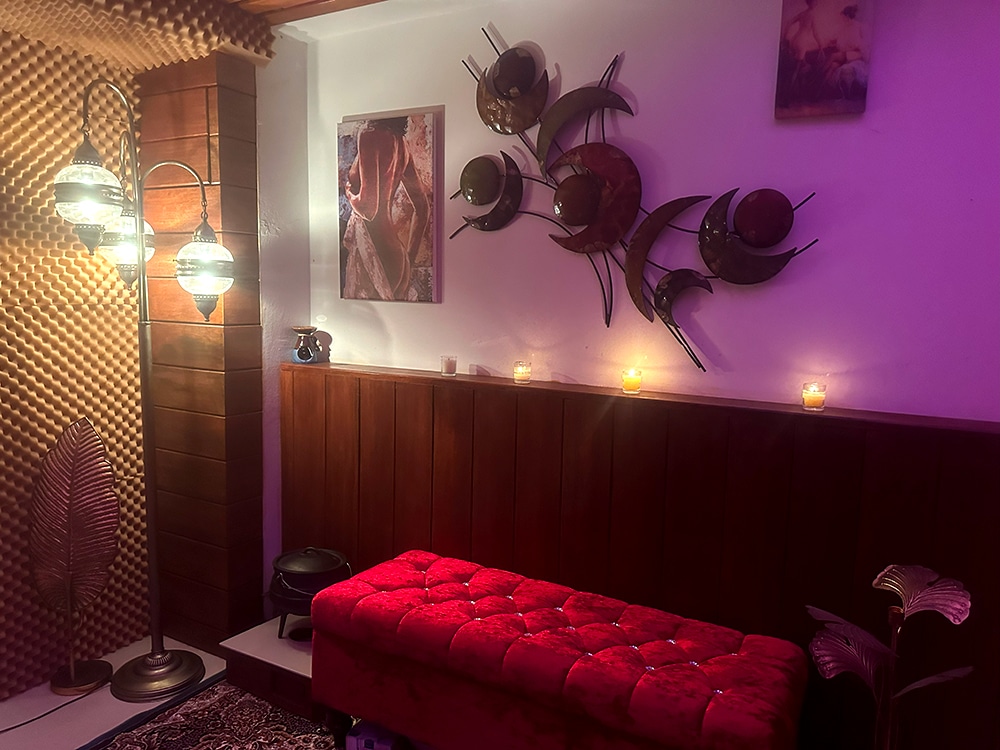A herbal tea might be offered. Perhaps even a cup of cacao. If you’ve come for a session, we may ascend to the Blue Room for chart readings, channelling, or energy work. You’ll know what’s calling.